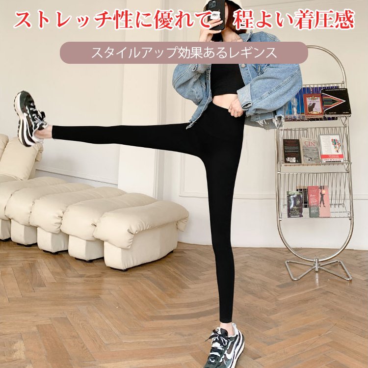 【ヨガレギンス】スリムと美脚をサポート、ハイウエスト部分に幅広設計で、お腹周りをスッキリに。