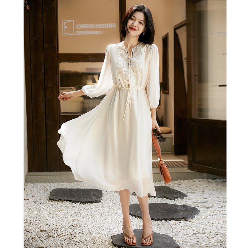 刺繍入りシルクワンピース