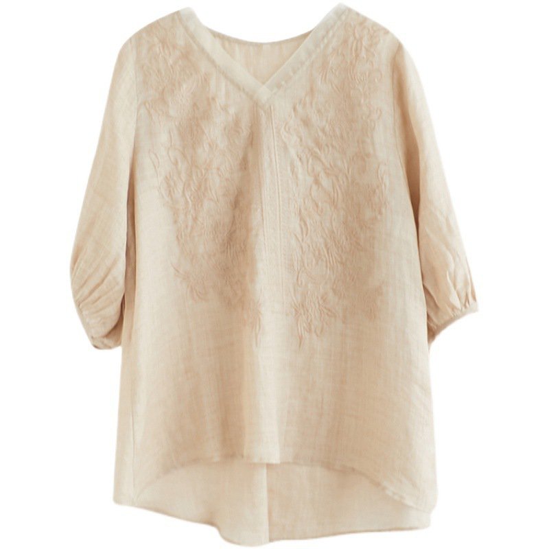 ペイズリー刺繍綿麻トップス